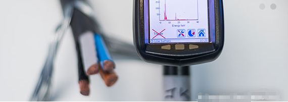 The XRF analyser bombards the cable material with X-Ray radiation which causes displacement of electrons in the atomic structure of the cable surface. As electrons fall back into the shells they emit or fluoresce energy. This energy can be measured and compared with the specific unique energies for each material type, allowing the determination of the presence of particular materials as well as their proportions within the material.