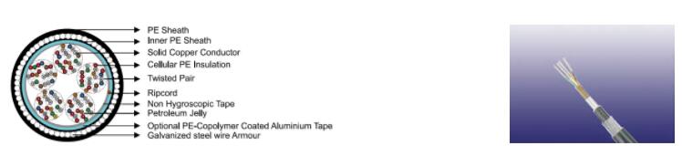 The cables are designed for use in access or trunk networks, from telephone exchange to subscriber area. The cables are suitable for installation in ducts, direct burial in the ground. Jelly filled construction is for subscriber's cables installed underground or along the edge of pavement for water proof. An armoured option is offered for direct burial installations.